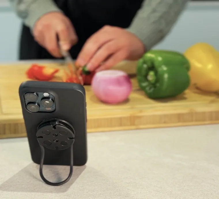 Libera tus manos. Control total en cualquier lugar.Soporte magnético multiuso para tu teléfono móvil que está diseñado para adaptarse a tu estilo y acompañarte en todo momento. Ya sea como soporte de abrazadera en la moto, como soporte magnético en el gimnasio o como atril en la cocina, tú decides cómo y dónde usarlo. Ligero, resistente, y compatible con pagos NFC. HECHO EN ESPAÑA
